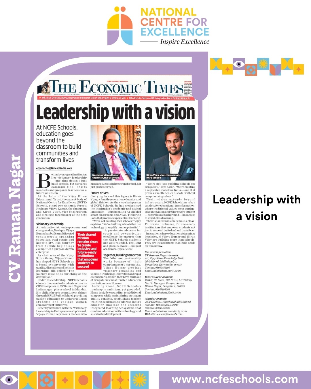 NCFE CV Raman Nagar | Affiliated to CBSE: Affiliation Number 830194 | Admissions Open for AY 2026-27